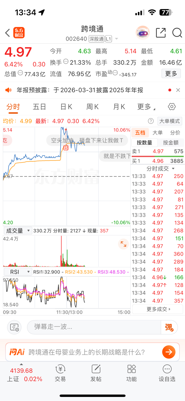 $跨境通(SZ002640)$ 好家伙,我滴个乖乖