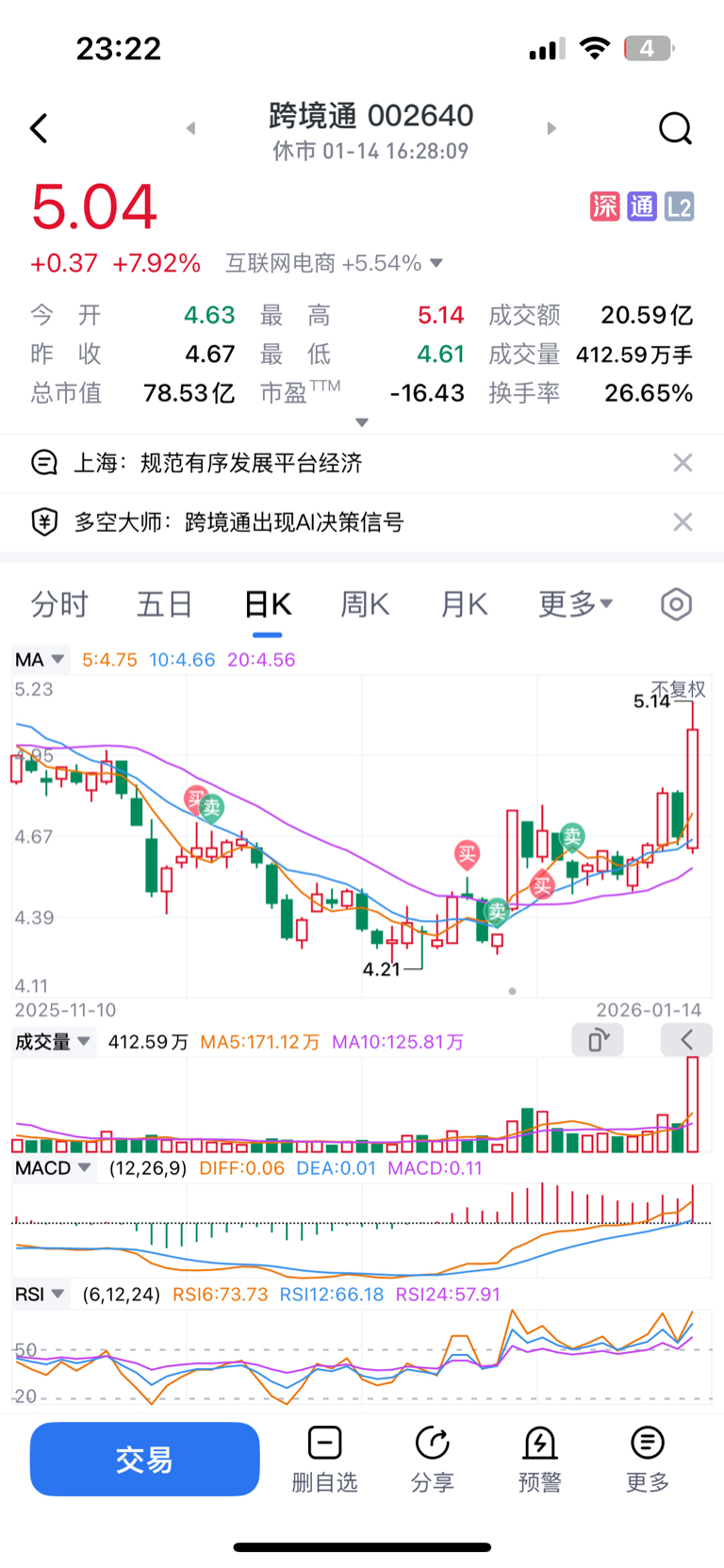 $跨境通(SZ002640)$ 我今年这个股不行,最近买几次亏几次,今天晚上研究了一晚上股票,打算建仓,这个股可以做吗