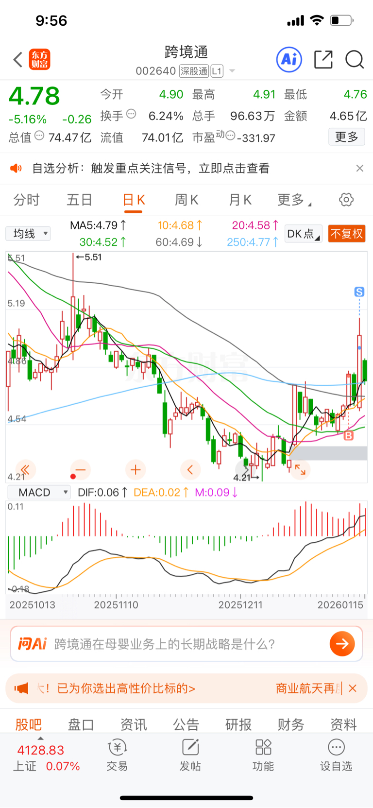 $跨境通(SZ002640)$ 昨天跑了