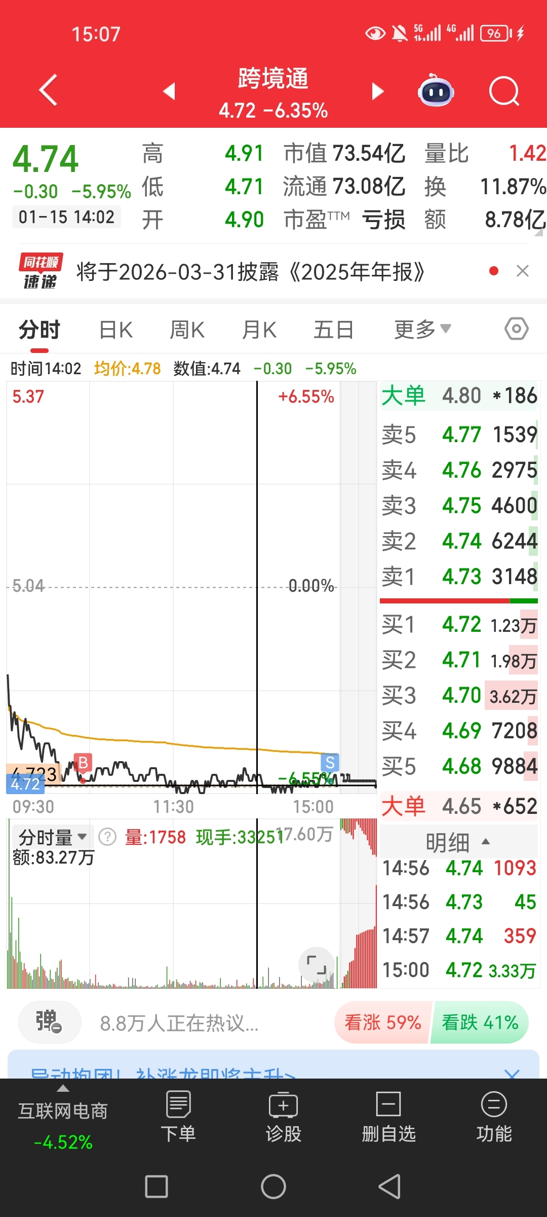 $跨境通(SZ002640)$ 尾盘卖了一大半。