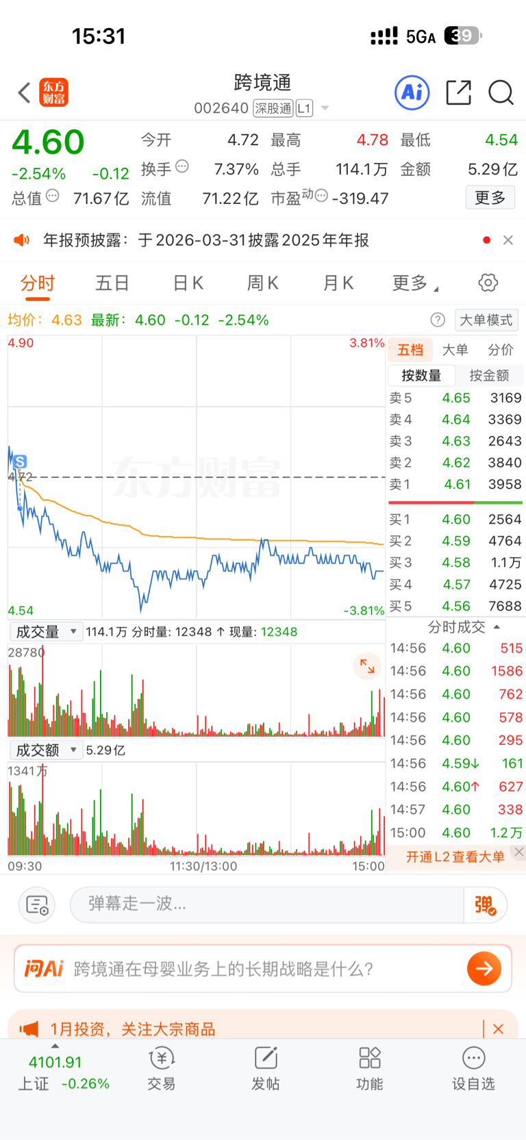 $跨境通(SZ002640)$ 我走了主力发财