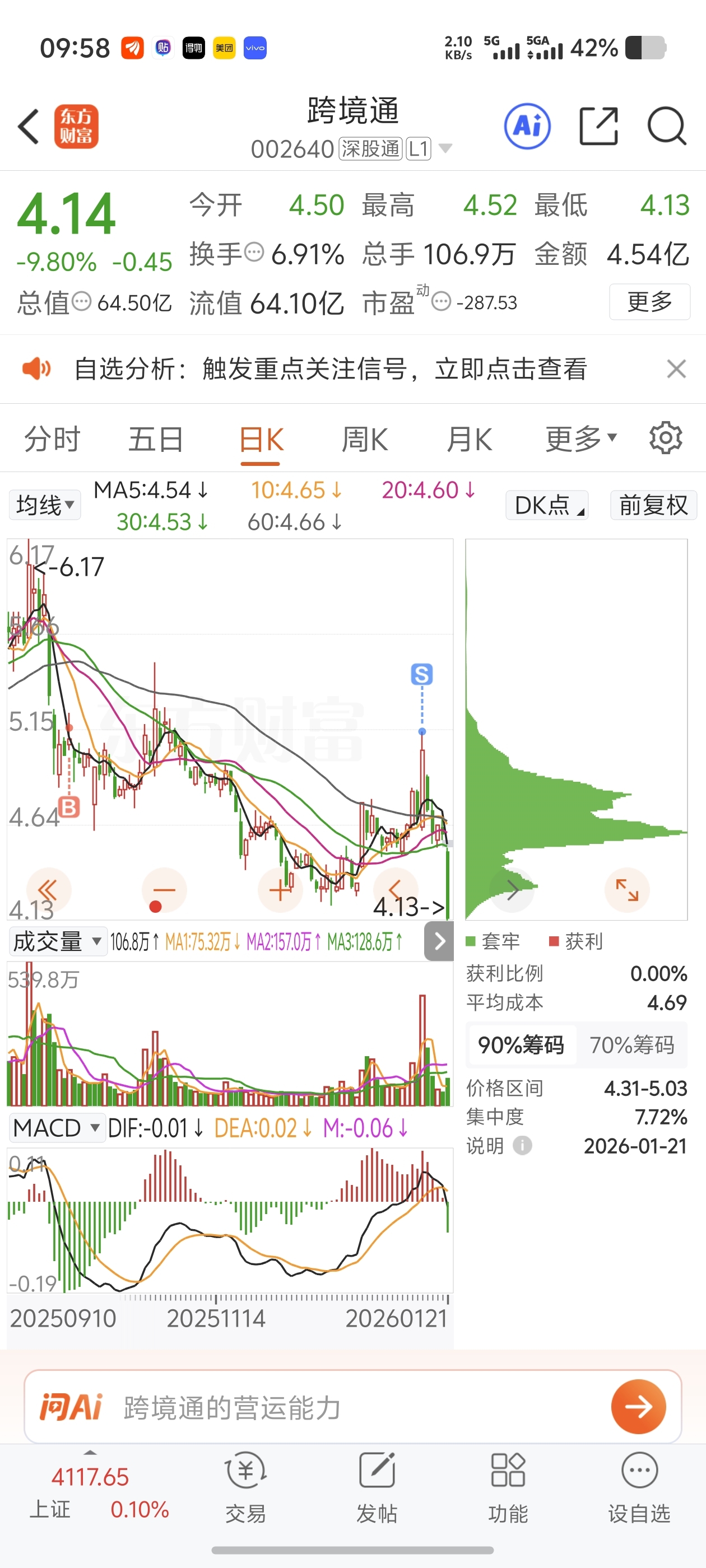 $跨境通(SZ002640)$ 本来是套住不想在里面磨了,没想到居然还是逃顶