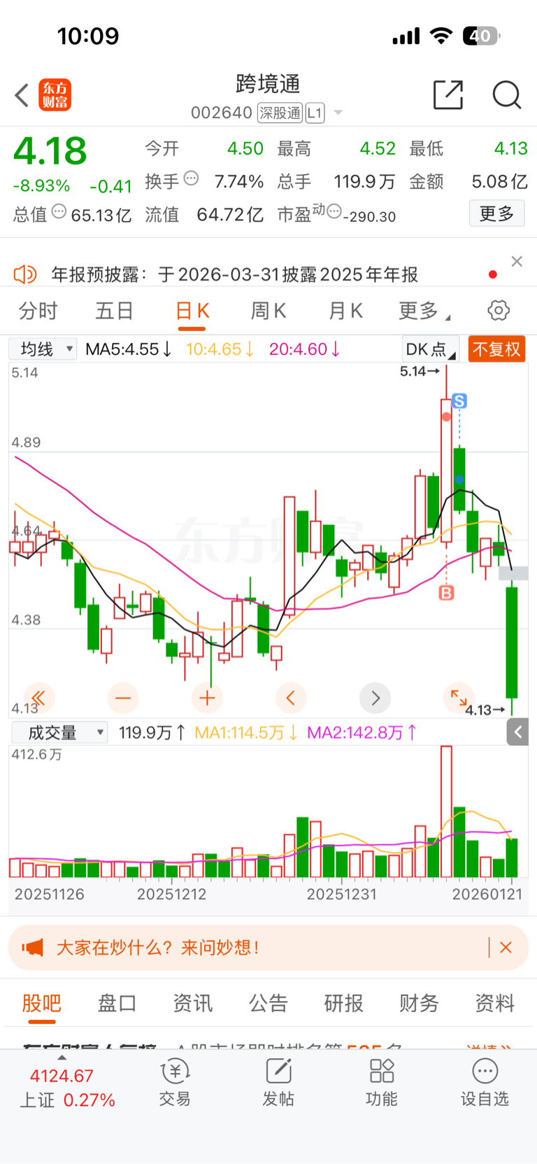 $跨境通(SZ002640)$ 还好卖的早,回来看你一眼烂成这样