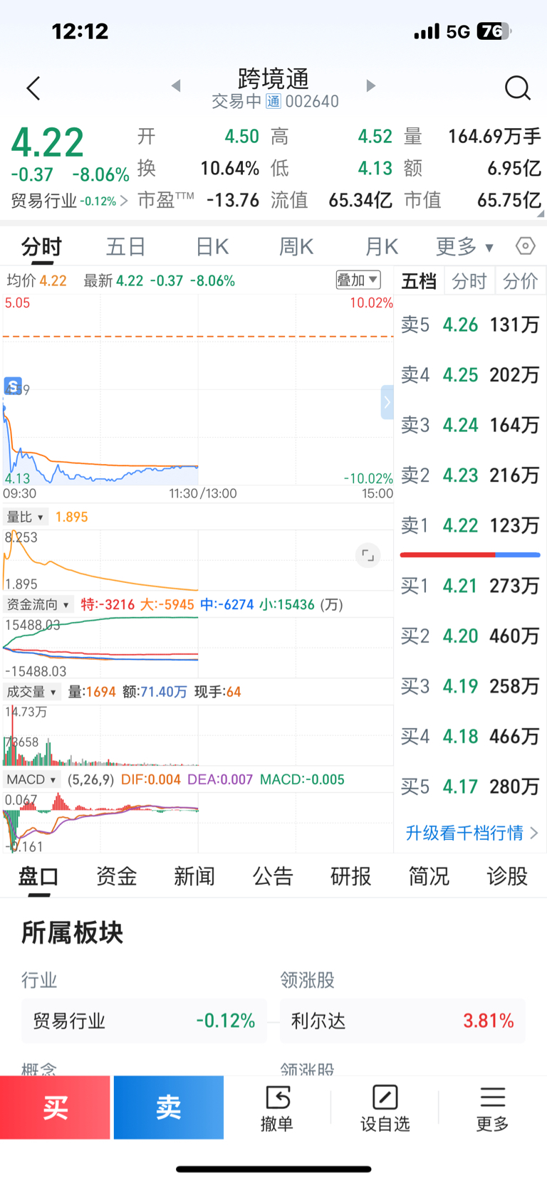 $跨境通(SZ002640)$ 还好开盘价跑了