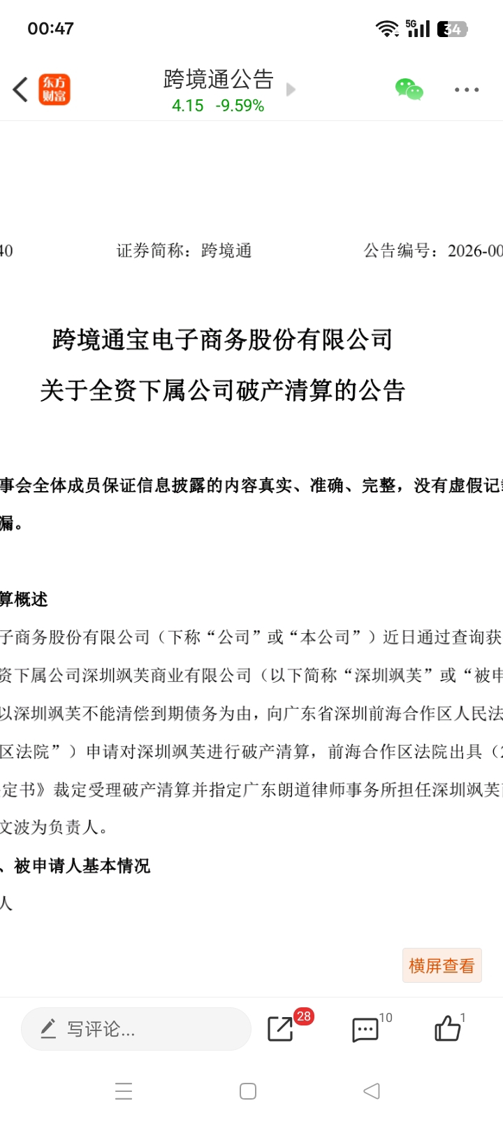 $跨境通(SZ002640)$ 完了,这公司破产了,大家怎么看?