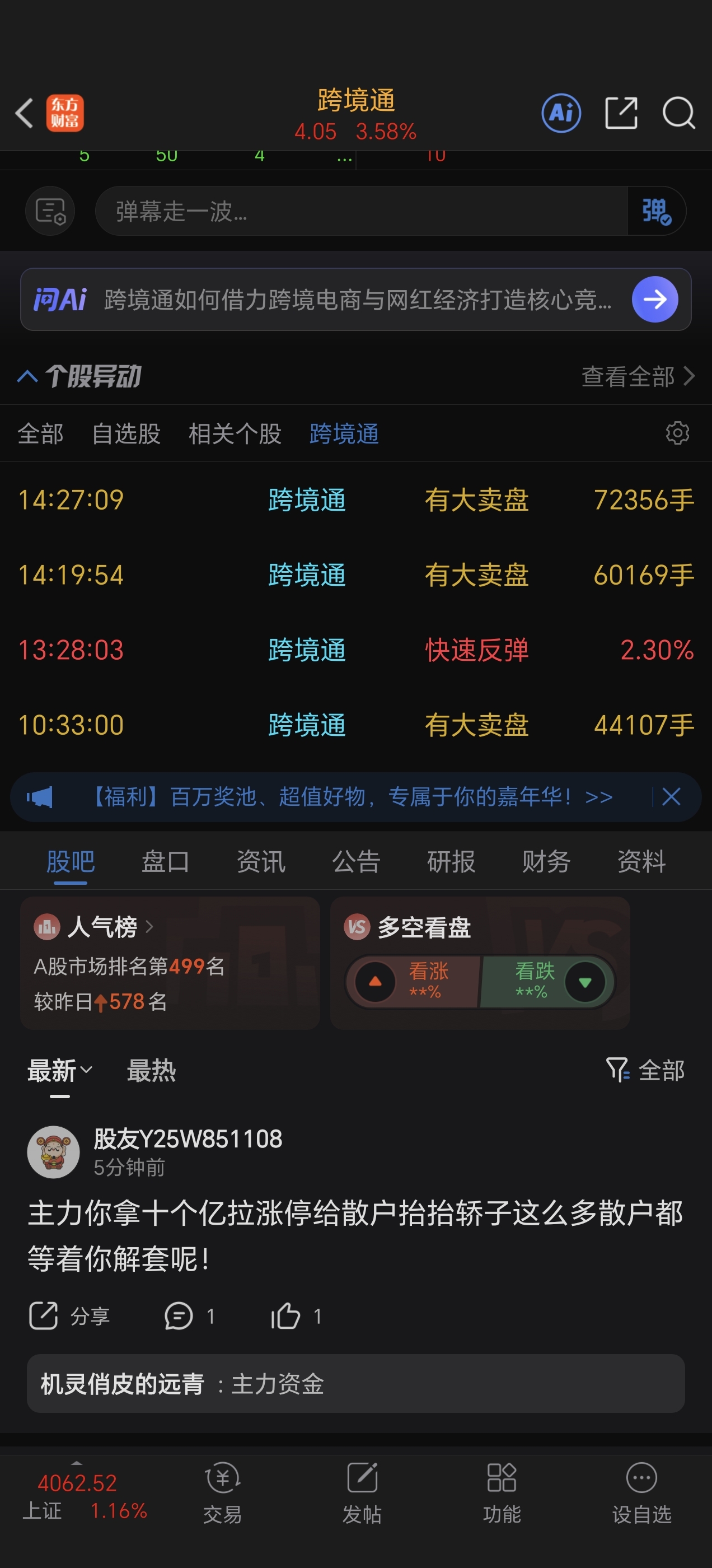 $跨境通(SZ002640)$ 主力怎么抬?
