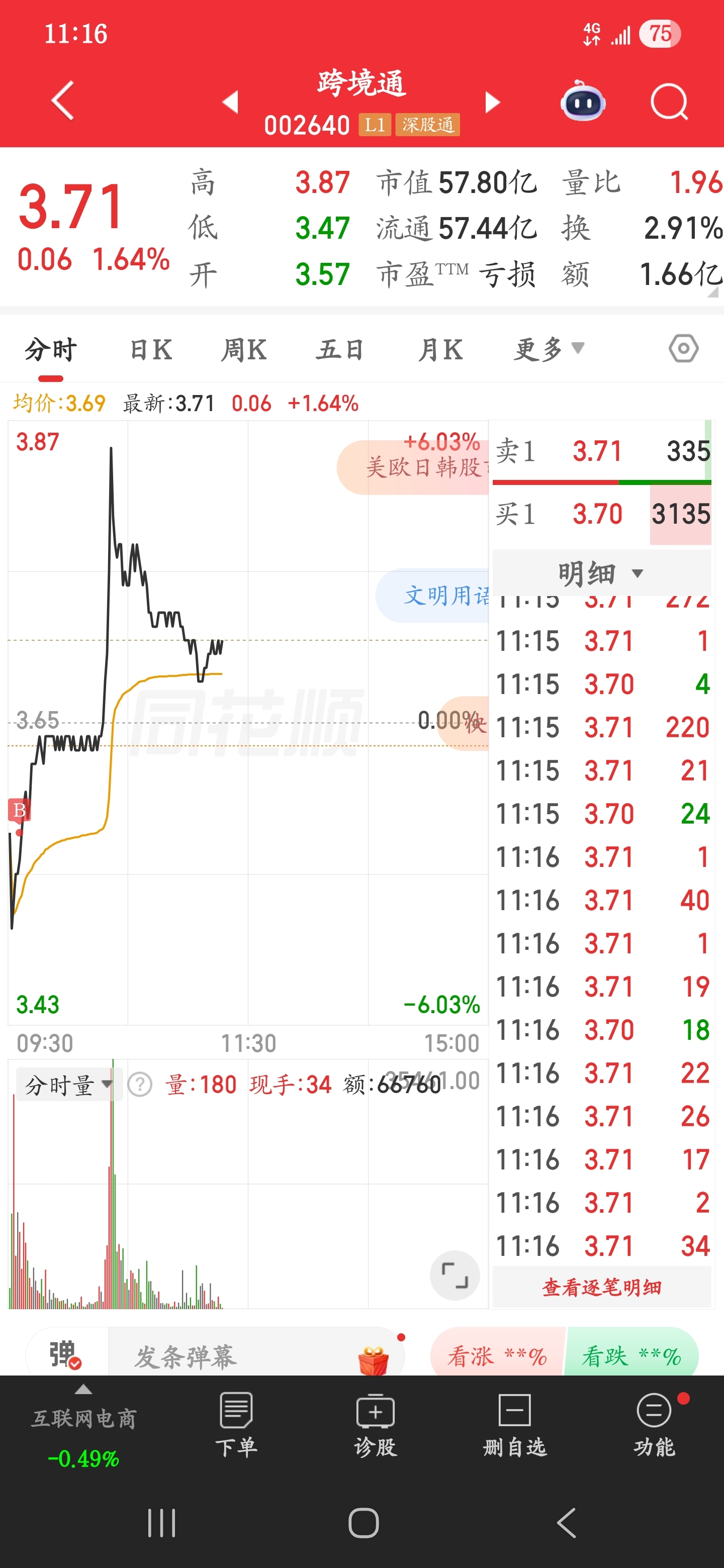 $跨境通(SZ002640)$ 继续跌,早上刚买