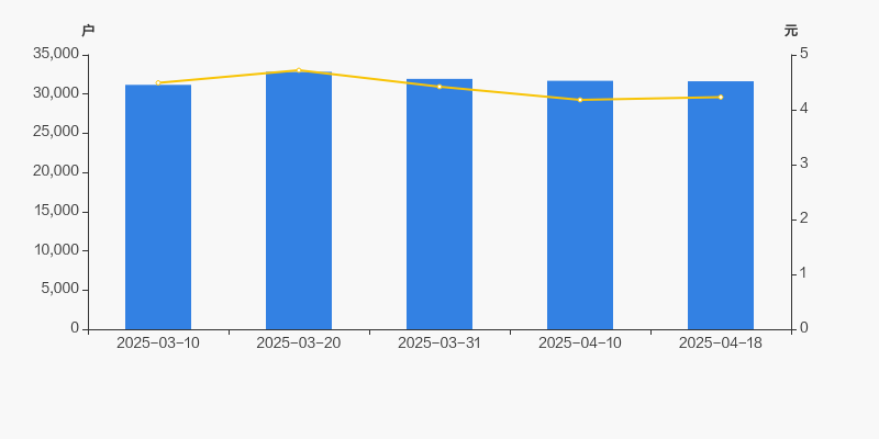 自2025年3月20日以来,公司股东户数连续3期下降,截至目前减幅为3.66%。2025年3月20日至2025年4月18日区间股价下降10.38%。
