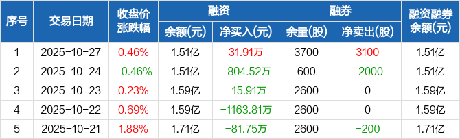 公元股份:融资净买入31.91万元,融资余额1.51亿元(10-27)