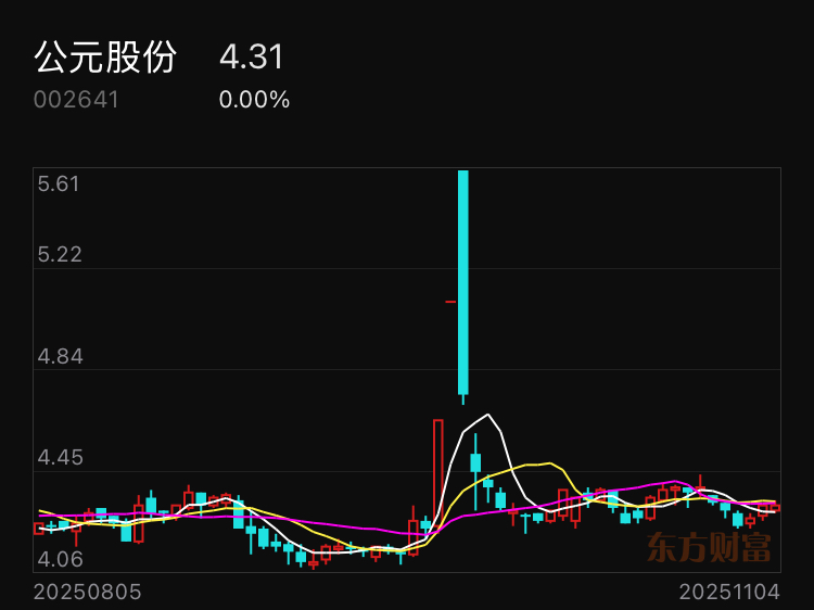 $公元股份(SZ002641)$ 距离9月22日高开低走大长黑已经26日了,该洗的筹码都洗光光了,现在这货乏人问津,应该是二度启动的时机了!
