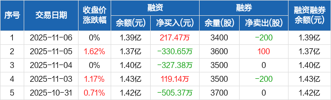 公元股份:融资净买入217.47万元,融资余额1.39亿元(11-06)