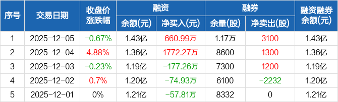 公元股份:融资净买入660.99万元,融资余额1.43亿元(12-05)