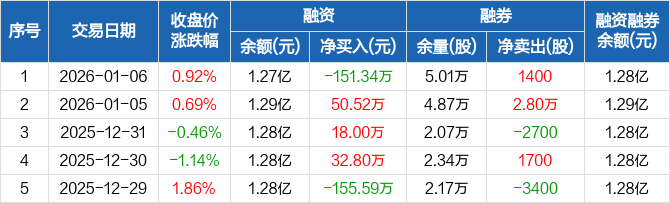公元股份:融资净偿还151.34万元,融资余额1.27亿元(01-06)