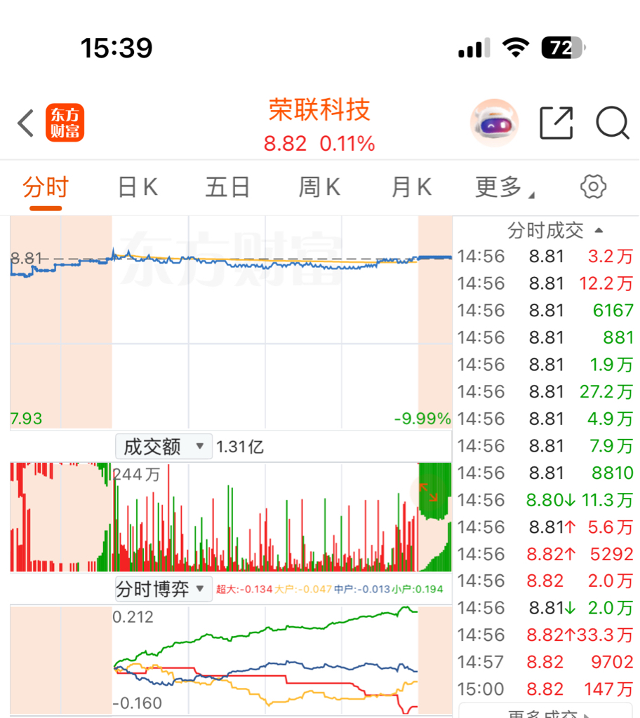 $荣联科技(SZ002642)$ 集合竞价明天是啥走势啊,会看的说说呗