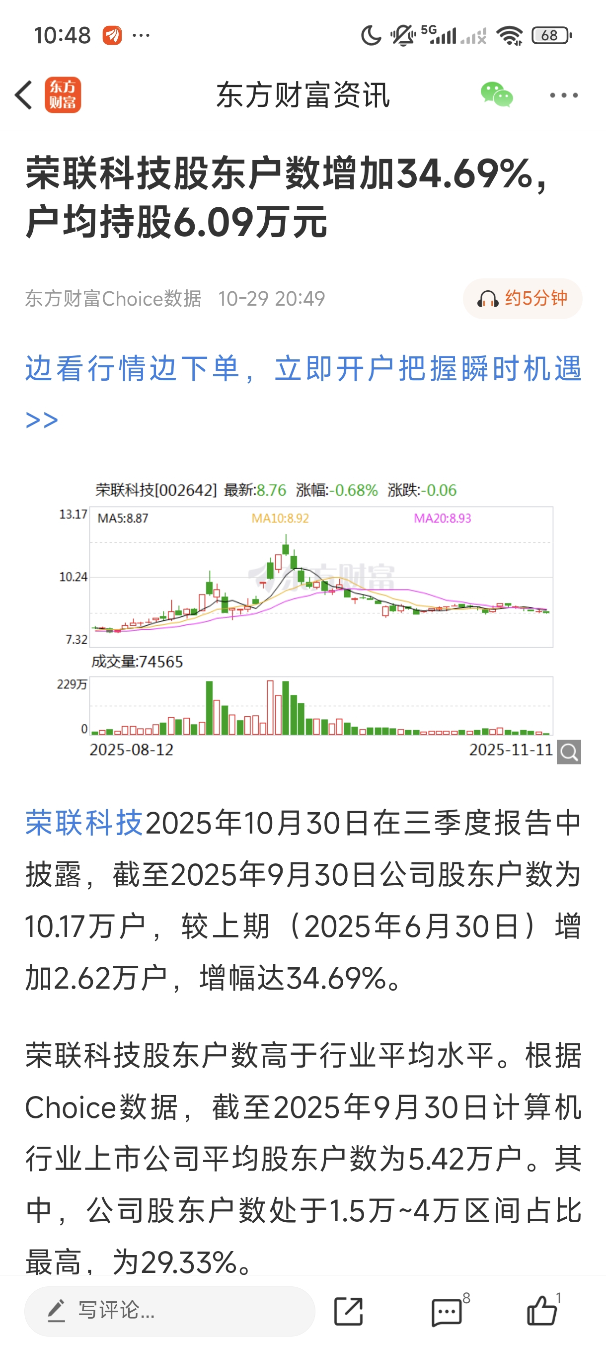 $荣联科技(SZ002642)$ 散户集中营,这么多散户,主力筹码都没了,到5万散户才能成妖