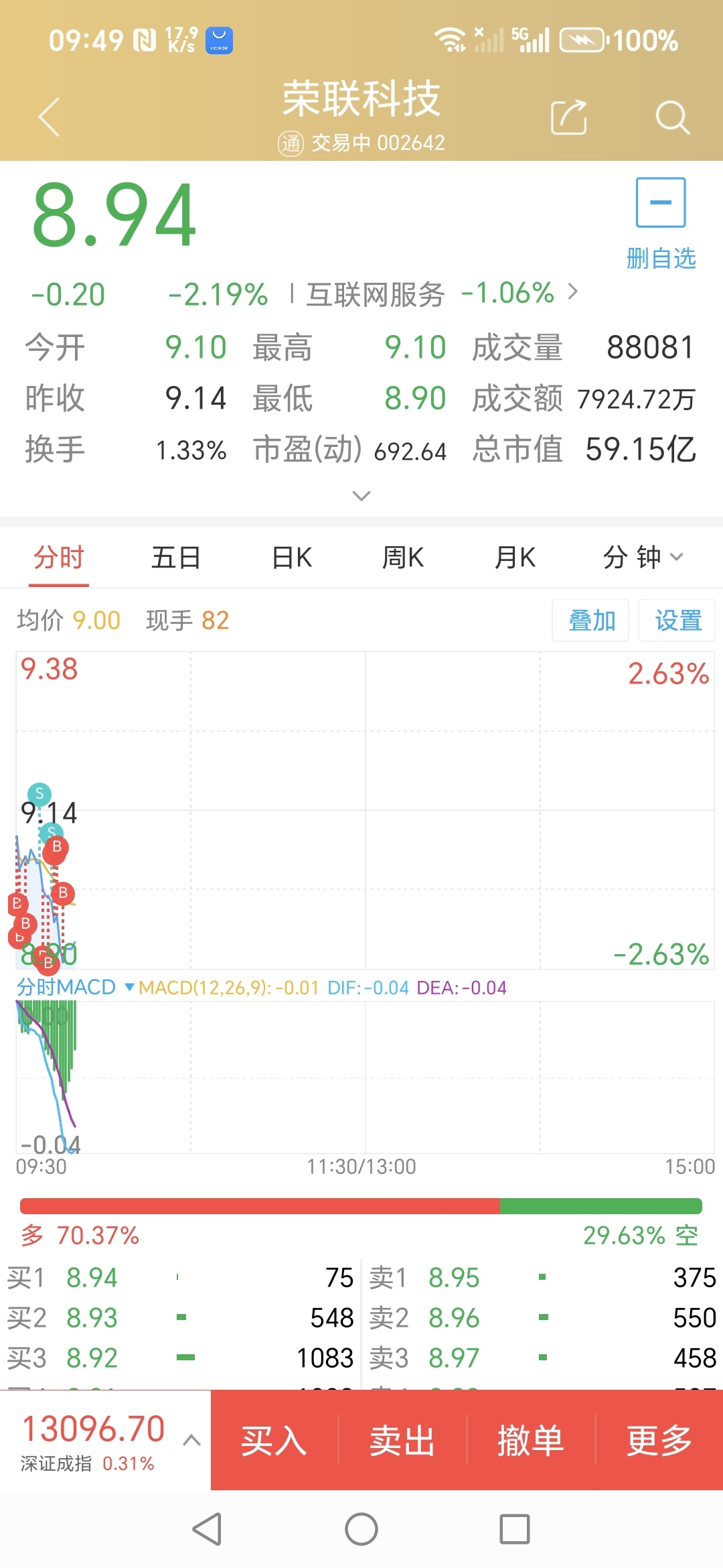$荣联科技(SZ002642)$ 8.93已入,主力继续表演了
