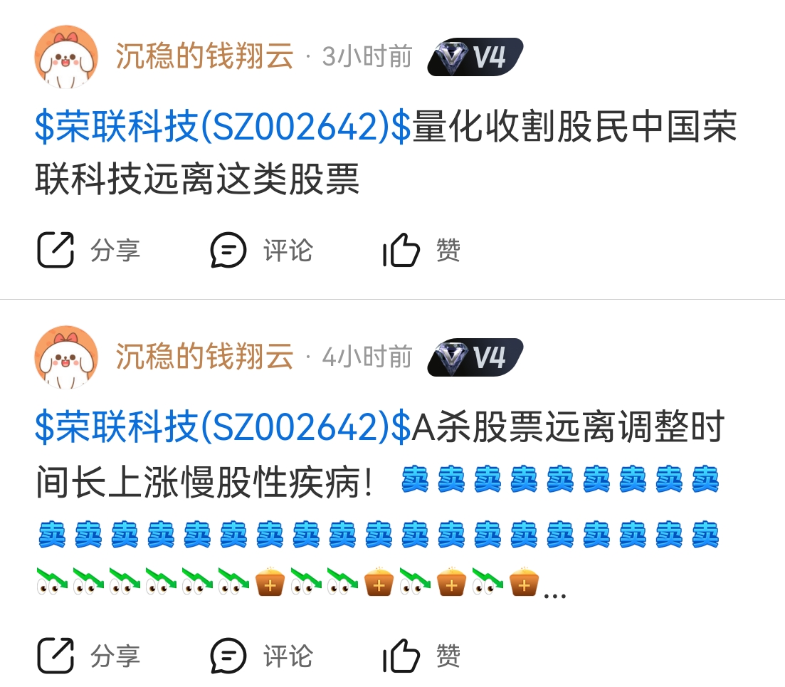 $荣联科技(SZ002642)$ 图中这人就是个超级超级大SB,一般来说,哪只股票里边有这种超级SB存在的话,那只股票永远都不会涨,只会一直不停的跌。
