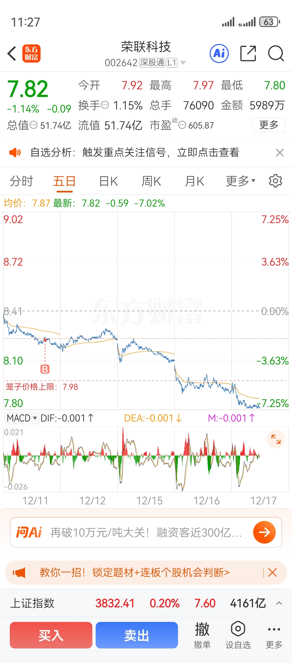 $荣联科技(SZ002642)$ 买了,就出不去了