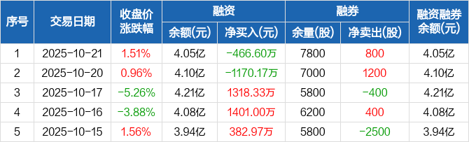 万润股份:融资净偿还466.6万元,融资余额4.05亿元(10-21)