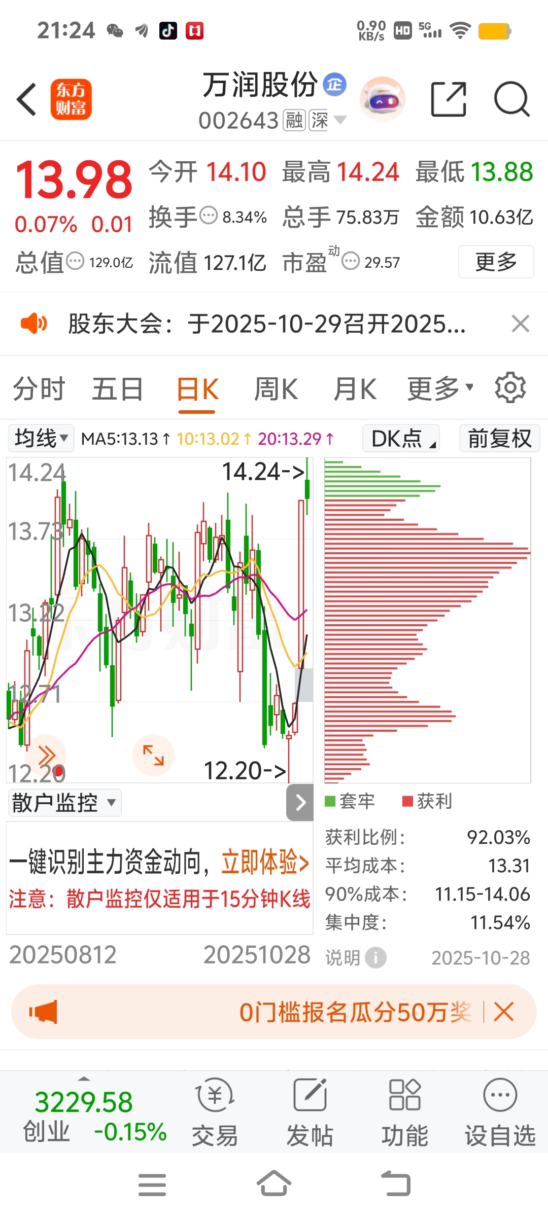 $万润股份(SZ002643)$ 三季度业绩暴增,筹码峰漂亮