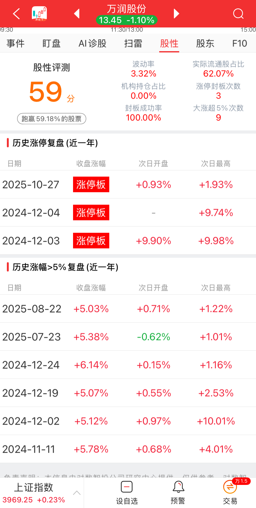 $万润股份(SZ002643)$ 兄弟们自己看吧一年三个涨停 一年才 六个百分之五以上 真的拉机啊