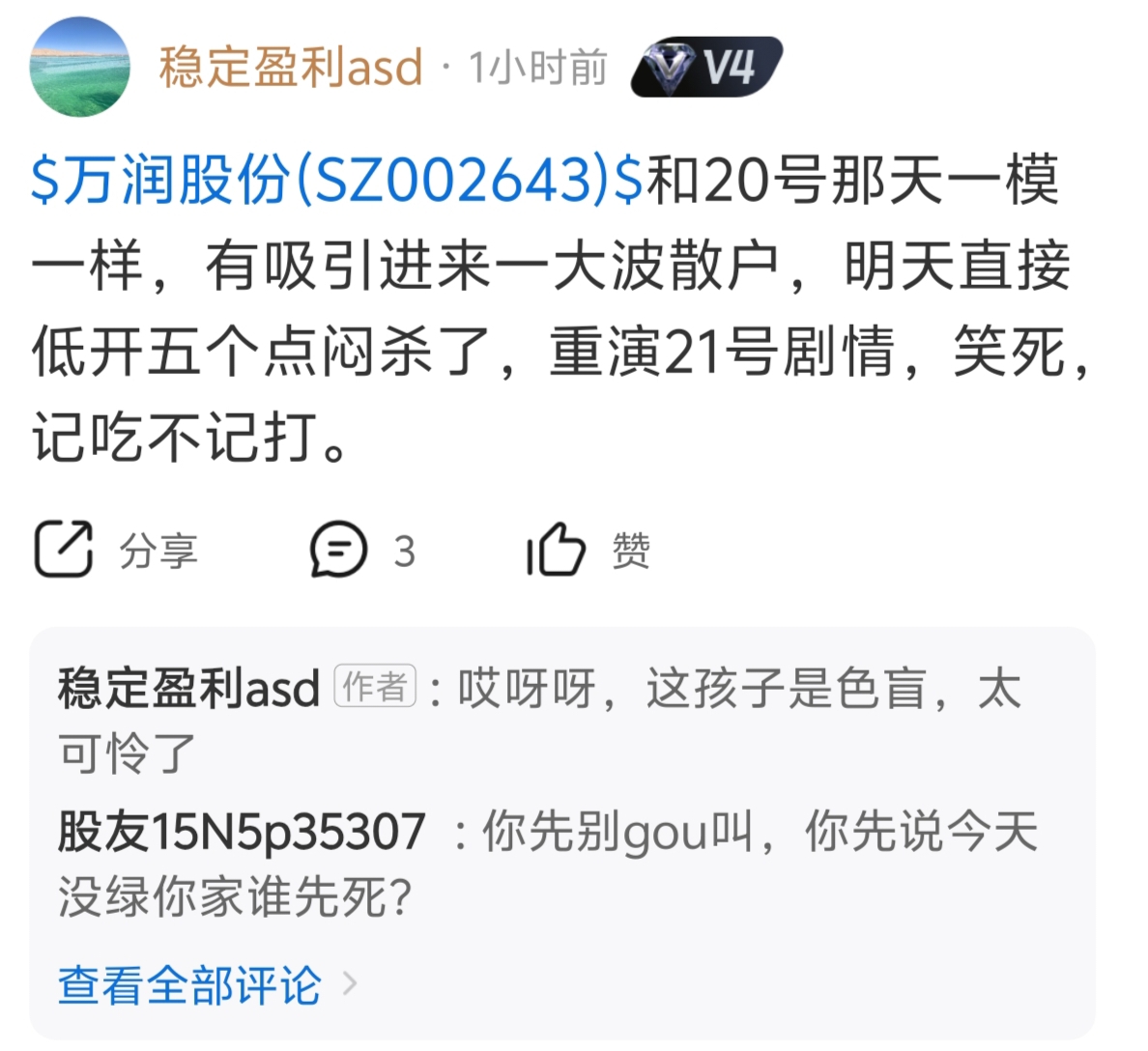 谁懂啊,周一的时候看到这个人的帖子准备清仓,结果不小心点成了全仓,怎么办,怎么办