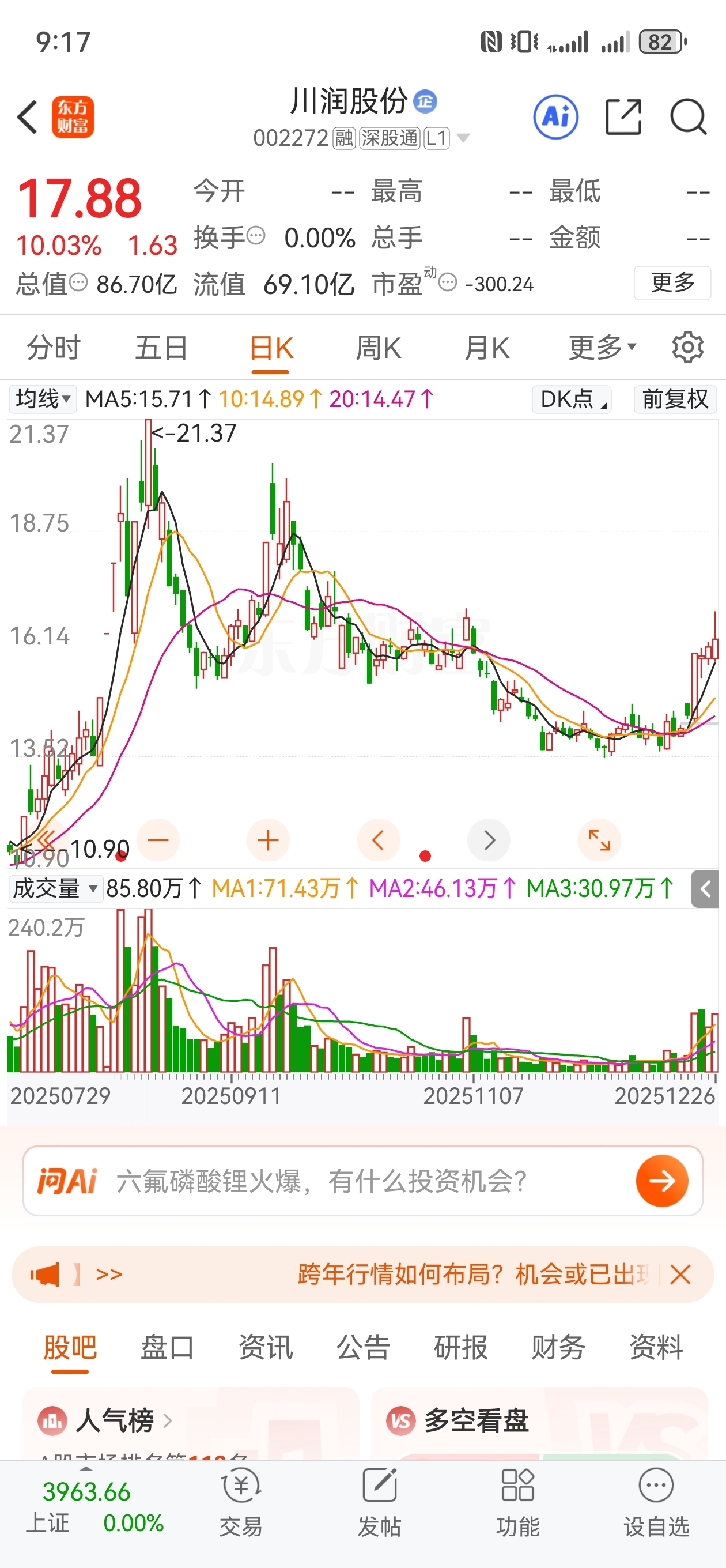 温馨提示: 1.根据《证券法》规定,禁止编造、传播虚假信息或者误导性信息,扰乱证券市场;2.用户在本社区发表的所有资料、言论等仅代表个人观点,与本网站立场无关,不对您构成任何投资建议。用户应基于自己的独立判断,自行决定证券投资并承担相应风险。《东方财富社区管理规定》