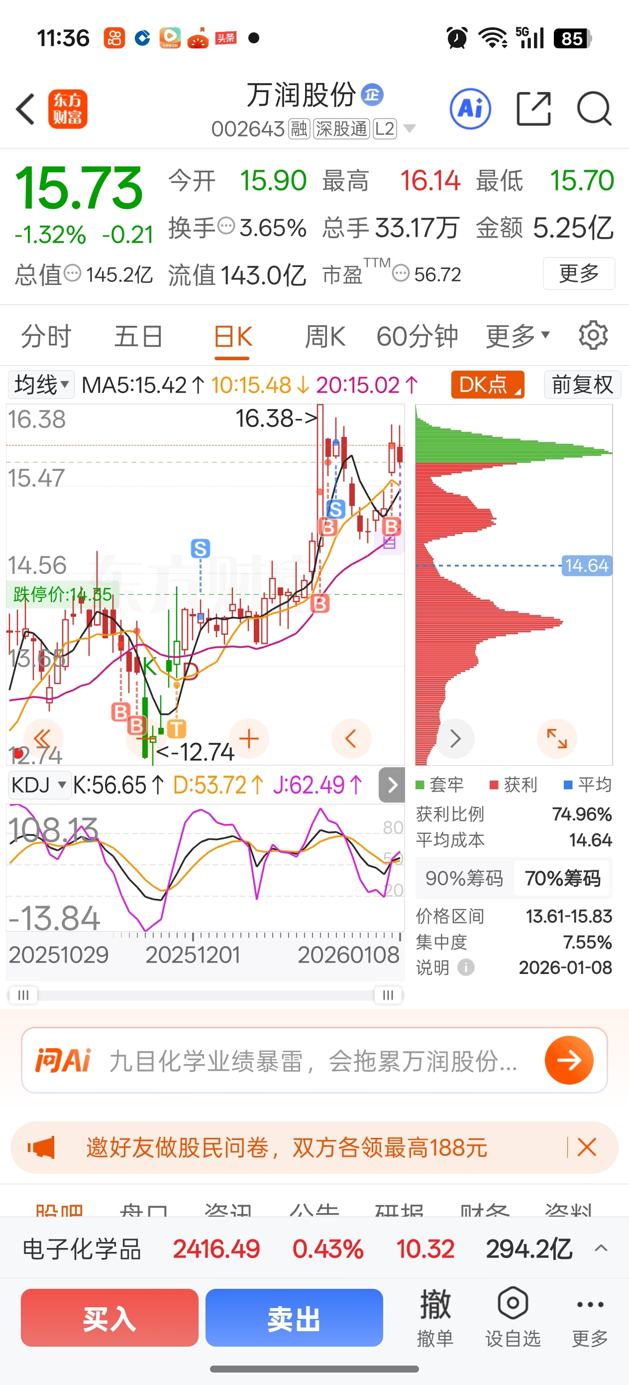 $万润股份(SZ002643)$ 追涨杀跌了