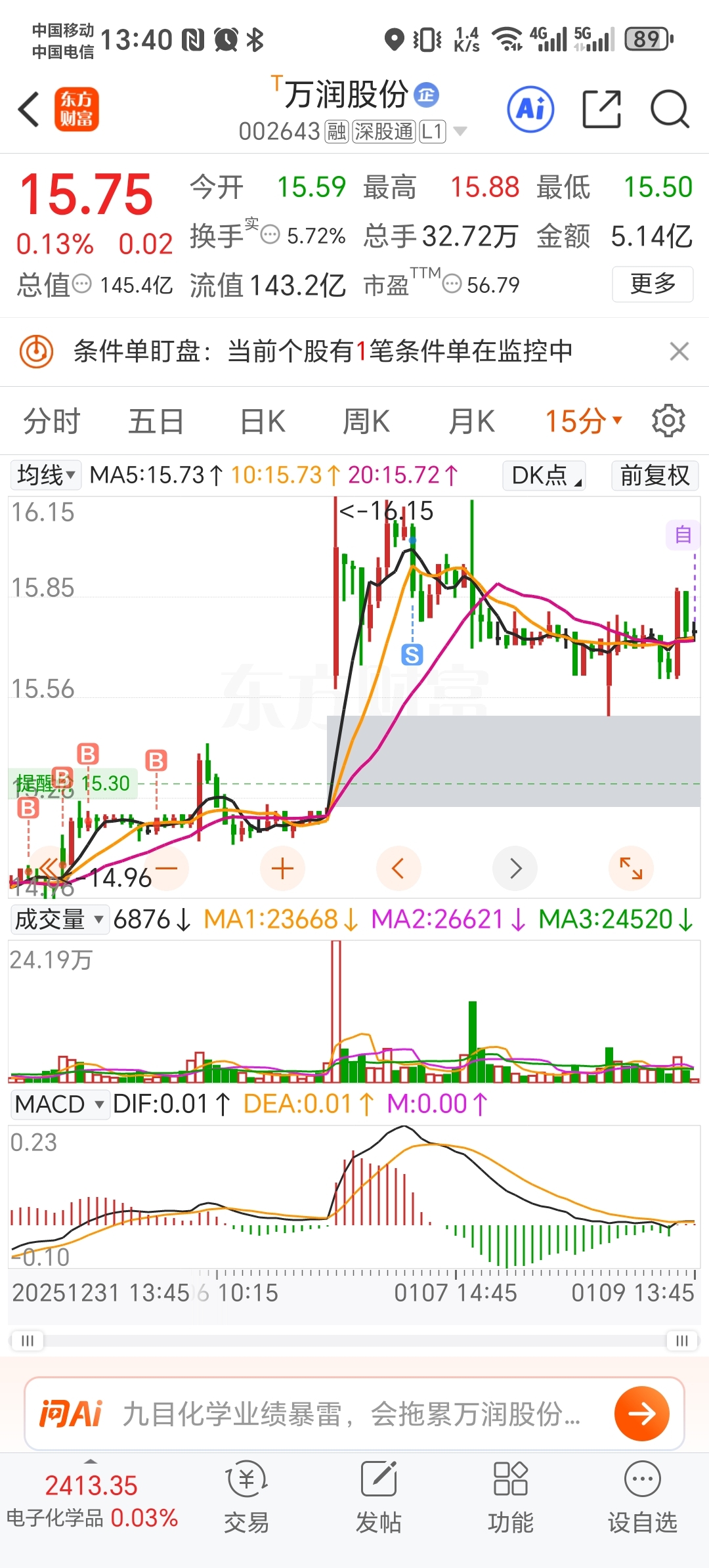 $万润股份(SZ002643)$ 继续横盘,继续加仓