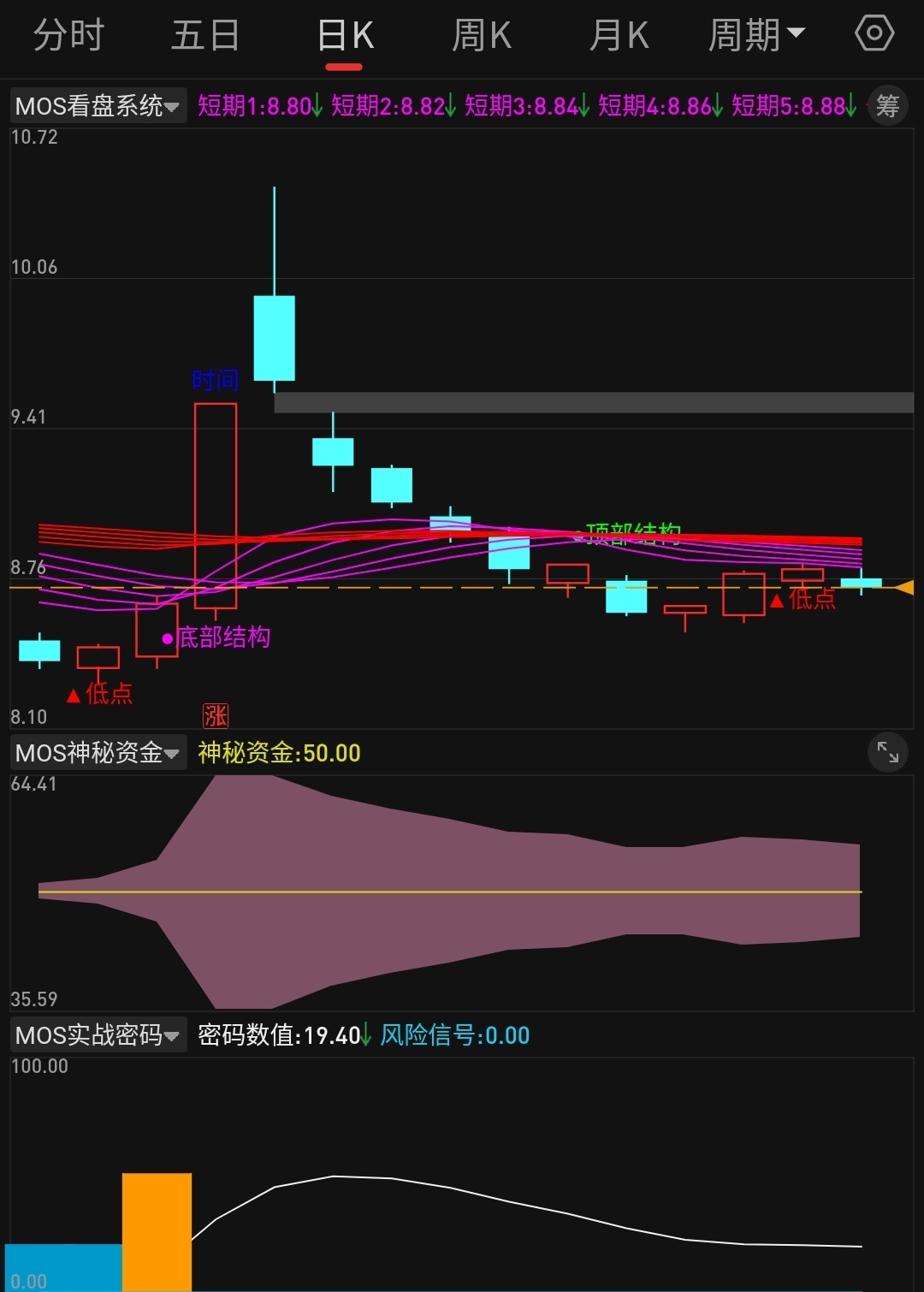 【mos跟踪佛慈】被紫色趋势带压的死死的 看看啥时候突破过去