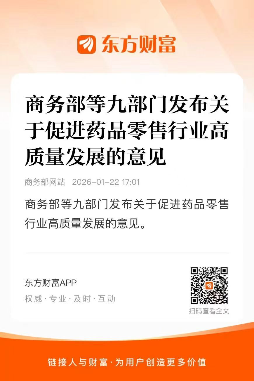 总要到医药了吧商务部等九部门发布关于促进药品零售行业高:质量发展的意见,