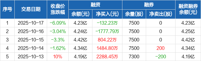 华宏科技:融资净偿还132.23万元,融资余额4.23亿元(10-17)