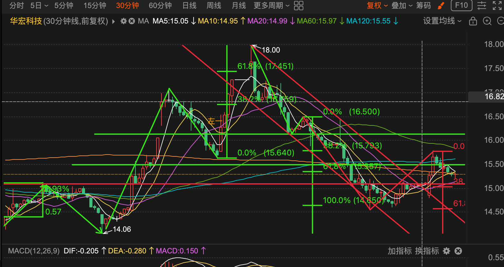 反弹目标位已到 看明天回踩创不创新低 创新低还会向下 去寻找14.2 不创新低未来就能突破18.6