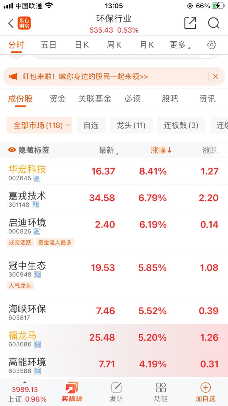 $华宏科技(SZ002645)$ 华宏科技今天跟不是稀土永磁,而是环保行业,整个环保行业版块是华宏领涨的,他又不是龙头,那会不会有一种可能,成为新龙