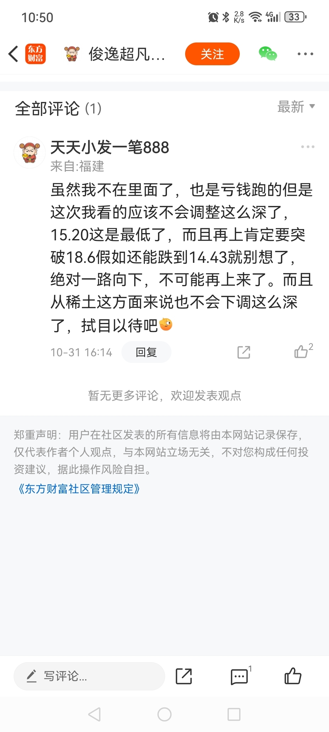 这个股我10.31号就说了,最低不会到15.20的,昨天但凡进了今天吃肉,而且很
