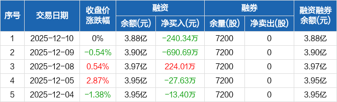 华宏科技:融资净偿还240.34万元,融资余额3.88亿元(12-10)