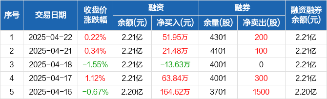 天佑德酒:融资净买入51.95万元,融资余额2.21亿元(04-22)