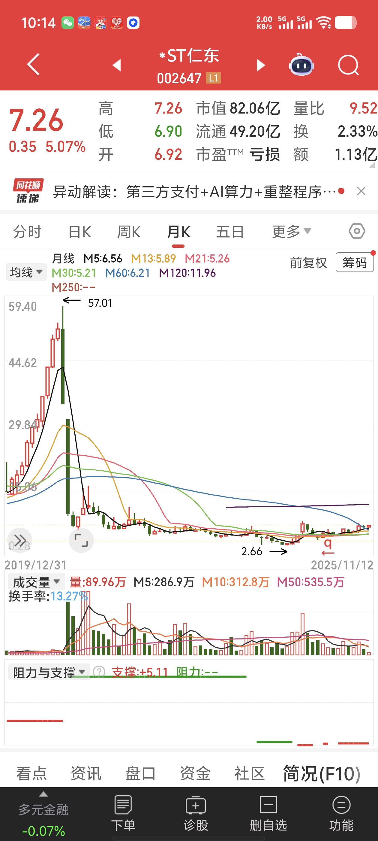 $*ST仁东(SZ002647)$ 跨境人民币支付第一股,直奔57