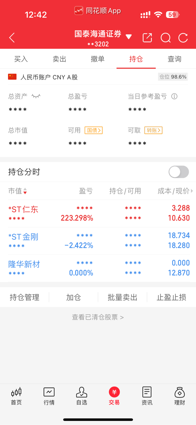 $*ST仁东(SZ002647)$ 感谢东哥,减仓了些,去金刚了,剩下的半仓一股不卖,还有那个南宁人。卖飞了仁东又跑回来装,只敢截图当时低点买入的,敢不敢截图三季报出来后的图?装啥装呢,笑死我了,卖飞了估计心里在滴血吧。还在这装,你说。你能啥能?