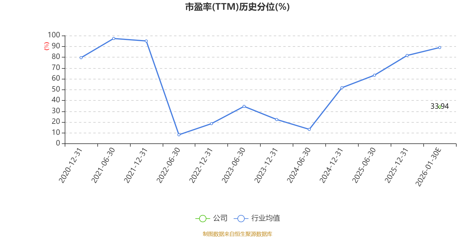 以本次披露业绩预告均值计算,公司近年市盈率(TTM)图如下所示: