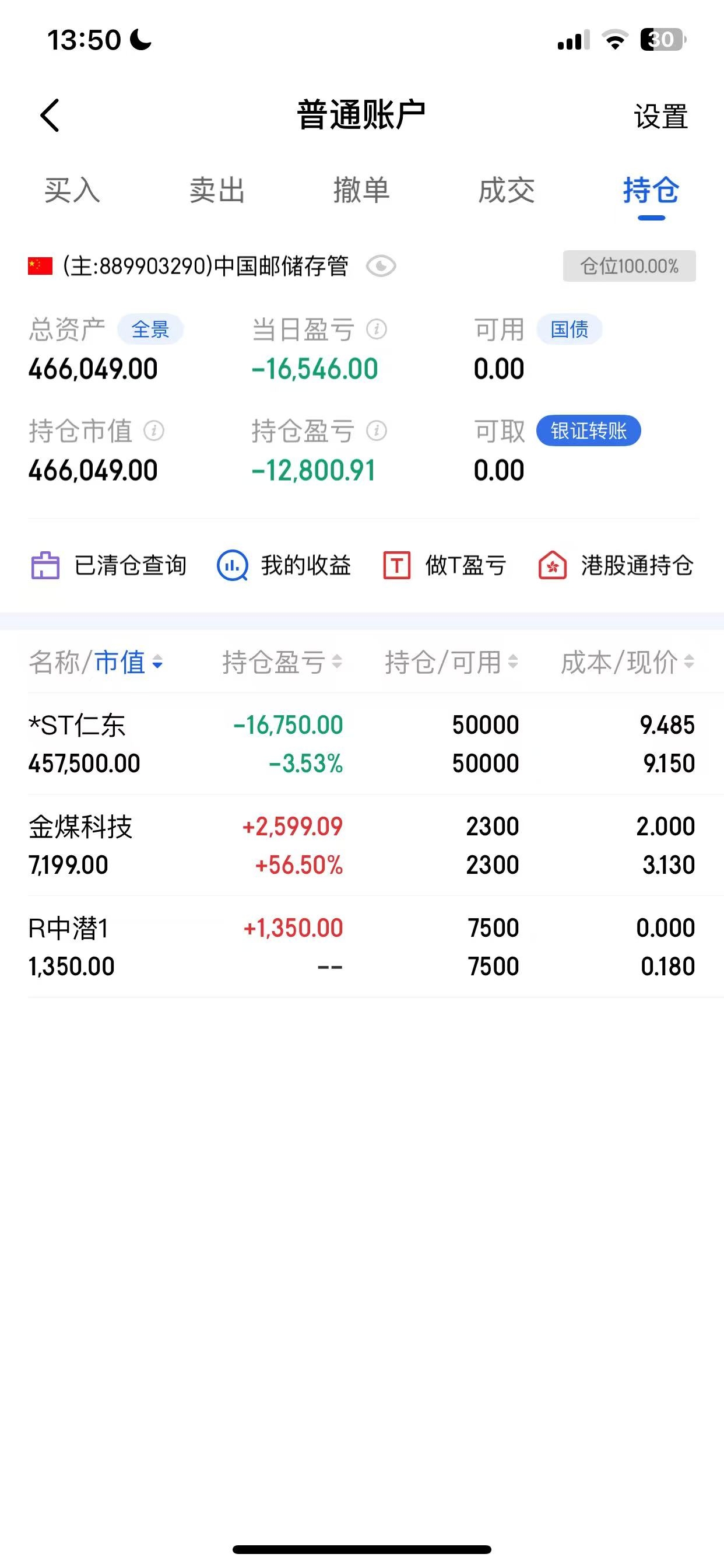 $*ST仁东(SZ002647)$ 我是泰迪我昨天打板被埋今天一股不卖,可以骂我蠢但是我与仁东共存亡拿到明年年底一股不卖高低不卖,我的持仓不p图直接给你们看!我是泰迪我为仁东带盐!