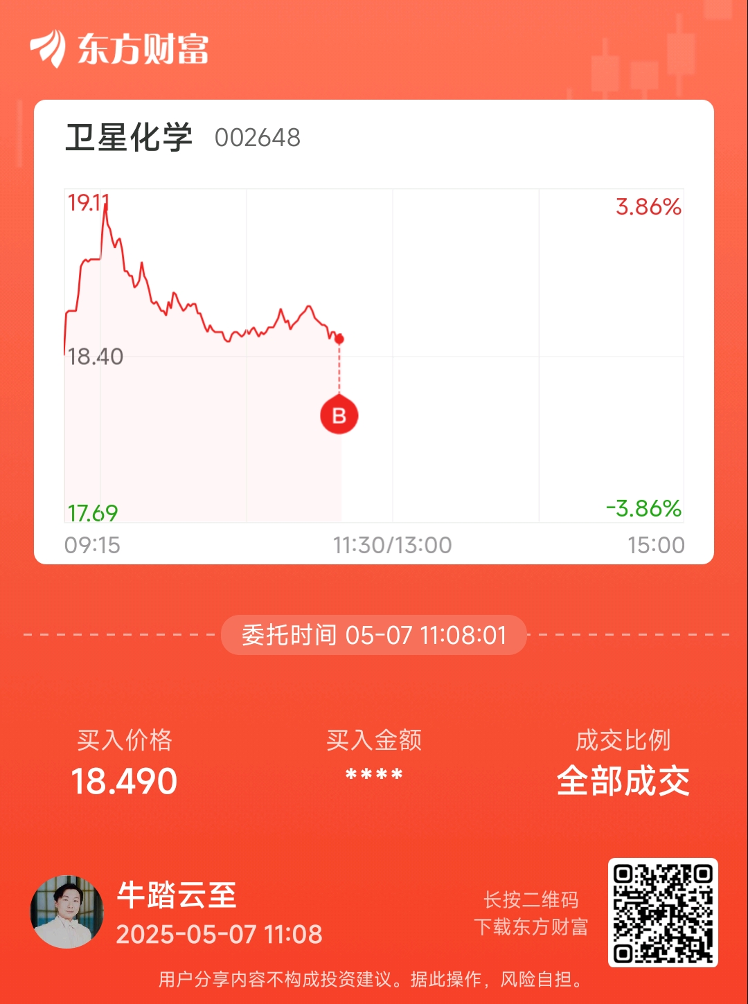 郑重声明:用户在财富号/股吧/博客等社区发表的所有信息(包括但不限于文字、视频、音频、数据及图表)仅代表个人观点,与本网站立场无关,不对您构成任何投资建议,据此操作风险自担。请勿相信代客理财、免费荐股和炒股培训等宣传内容,远离非法证券活动。请勿添加发言用户的手机号码、公众号、微博、微信及QQ等信息,谨防上当受骗!