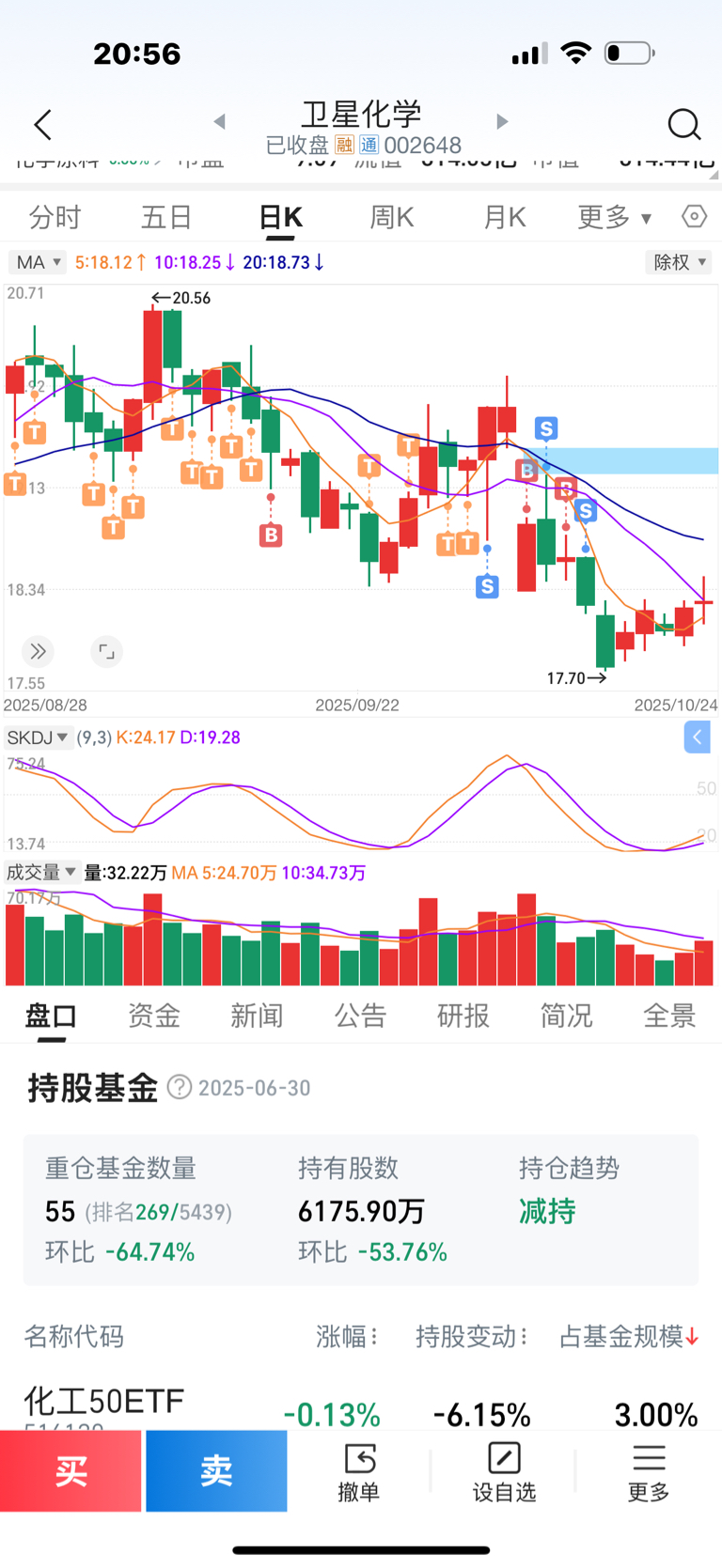 $卫星化学(SZ002648)$ 心酸 19.30 卖清了,1776 都没接回。