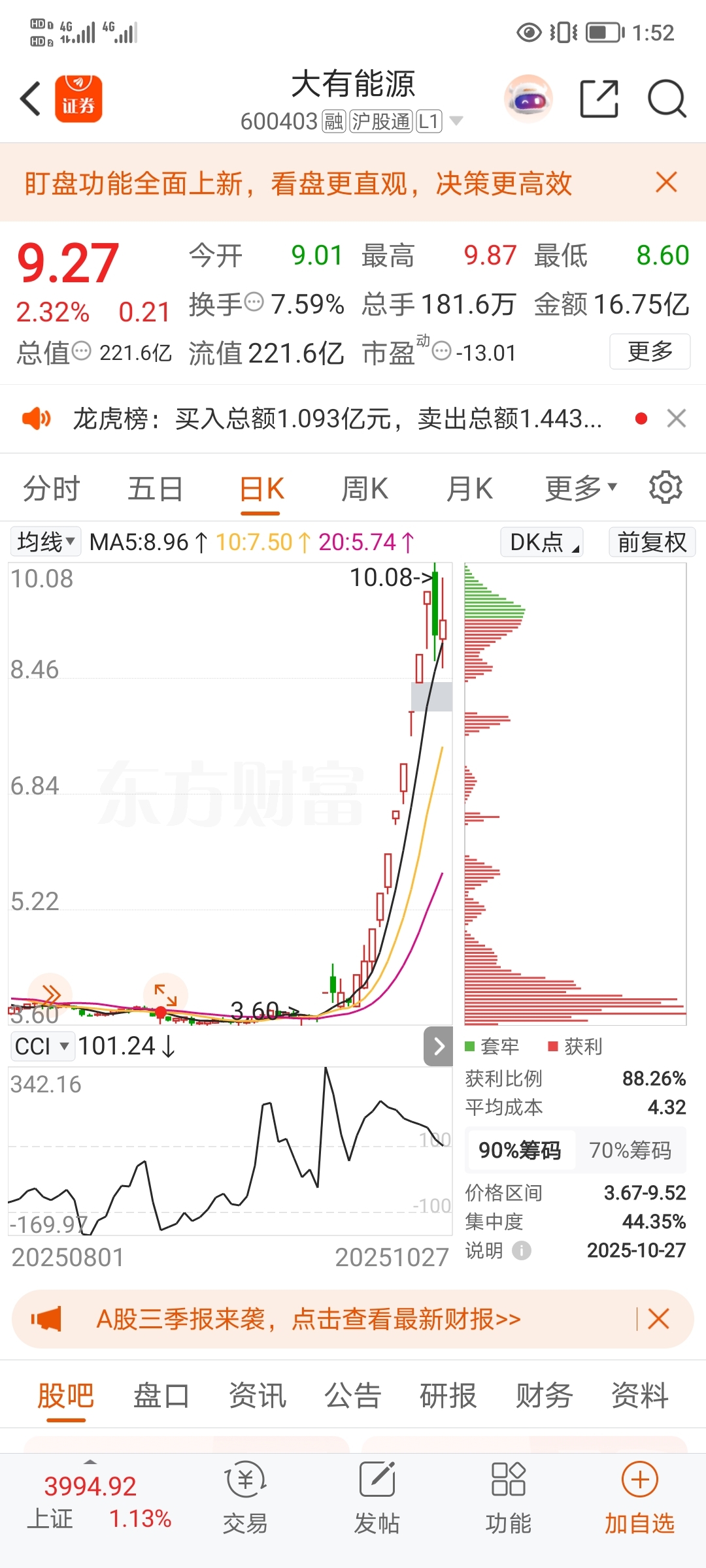 $卫星化学(SZ002648)$ 看看大有能源亏损股大涨。投机市场。