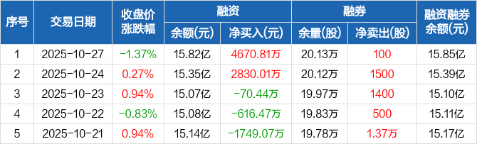 卫星化学:融资净买入4670.81万元,融资余额15.82亿元(10-27)