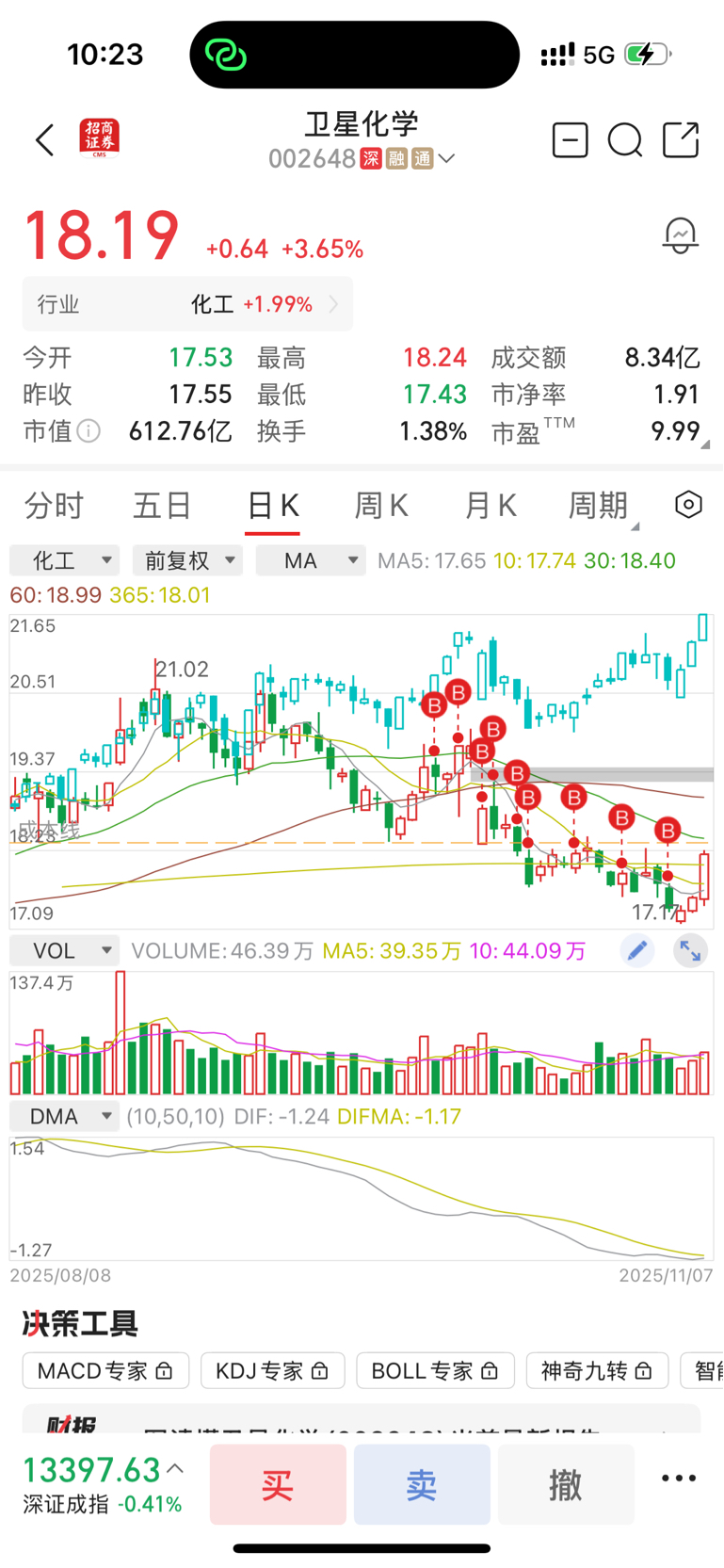$卫星化学(SZ002648)$ 要困境反转了吗,守得云开见月明,笑对人生扯胡子大厨超级小炒肉?