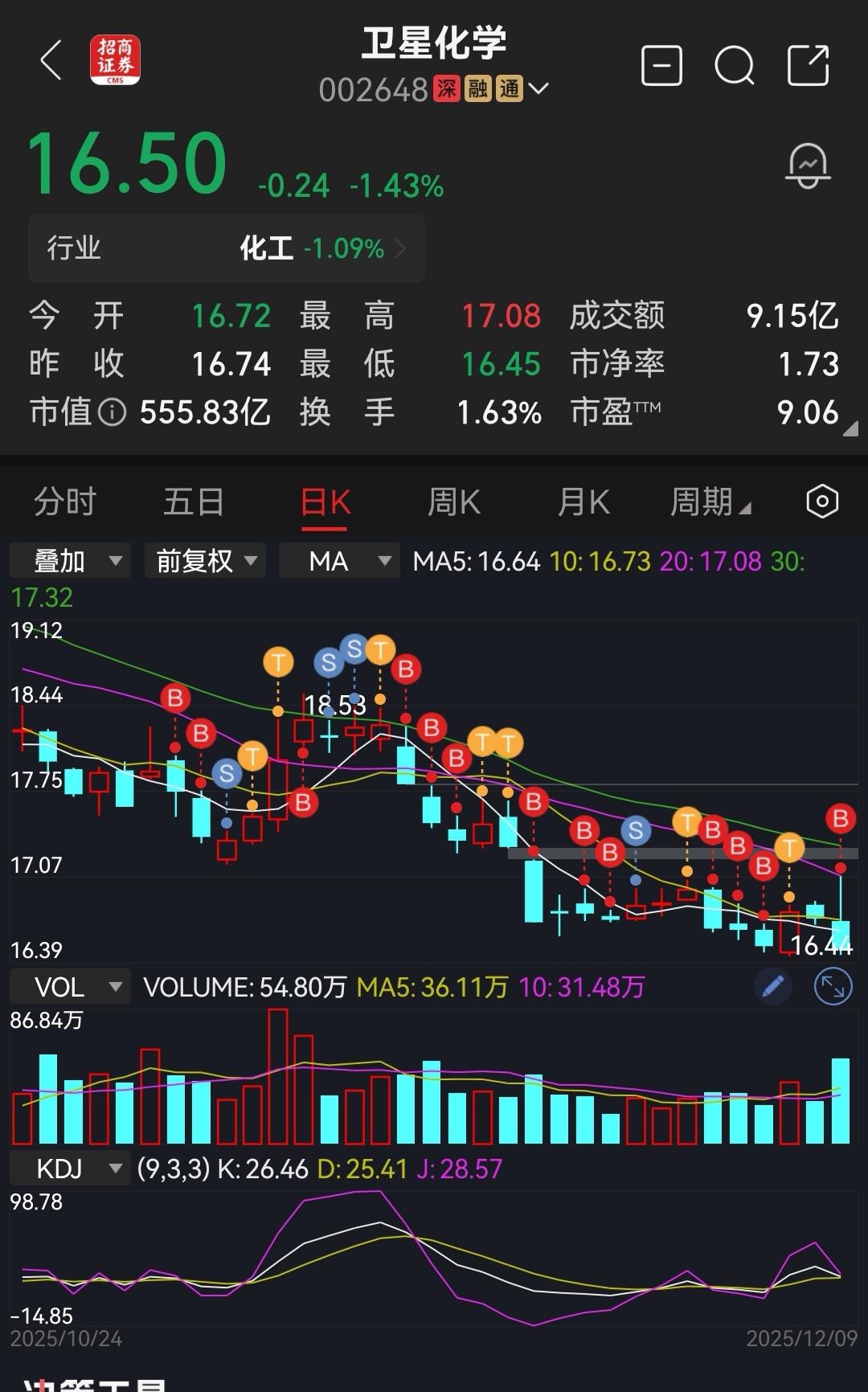$卫星化学(SZ002648)$ 通知:因看好卫星化学未来发展,目前已经连续多日加仓,今天加仓幅度最大,今天盘中加仓1.3亿元,目前持有卫星化学市值已经超过三亿元,目前还亏损-4%,同时计划在周三四五盘中继续增持卫星化学1亿元,由此造成的股价波动敬请广大投资者注意风险,特此公告。