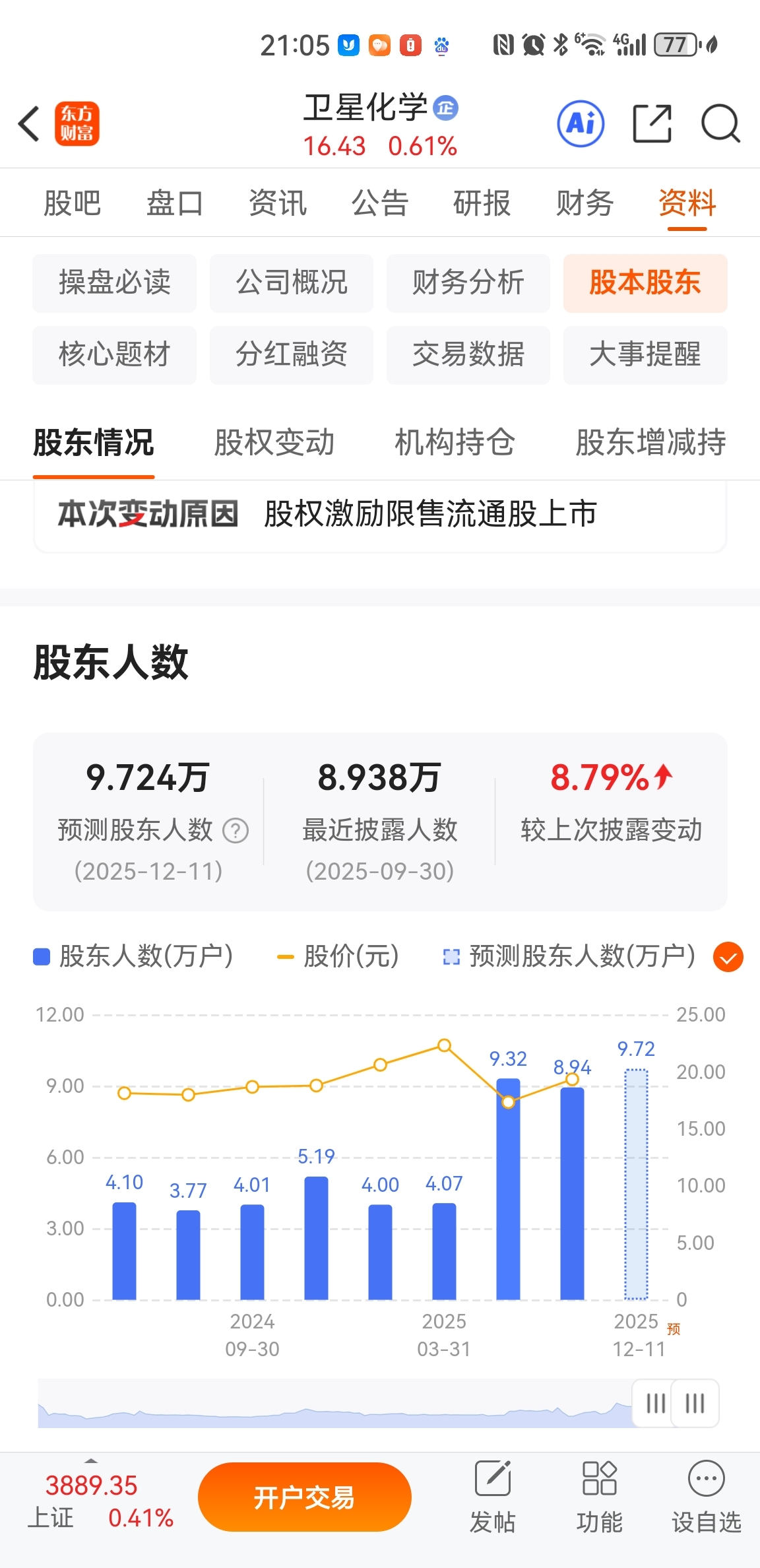 $卫星化学(SZ002648)$ 12.11散户9.724万