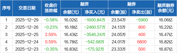 卫星化学:连续5日融资净偿还累计8326.25万元(12-29)