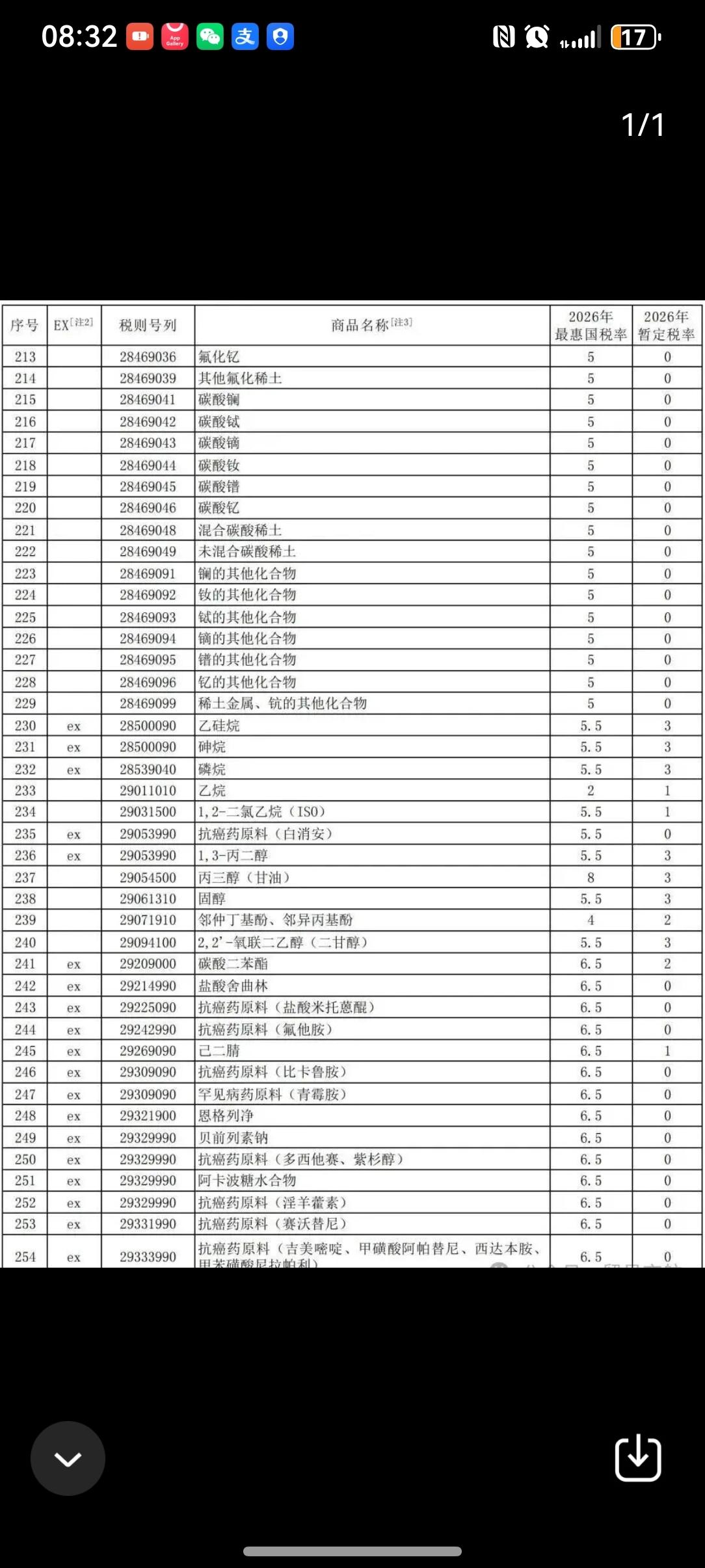 刚公布的进口商品关税。